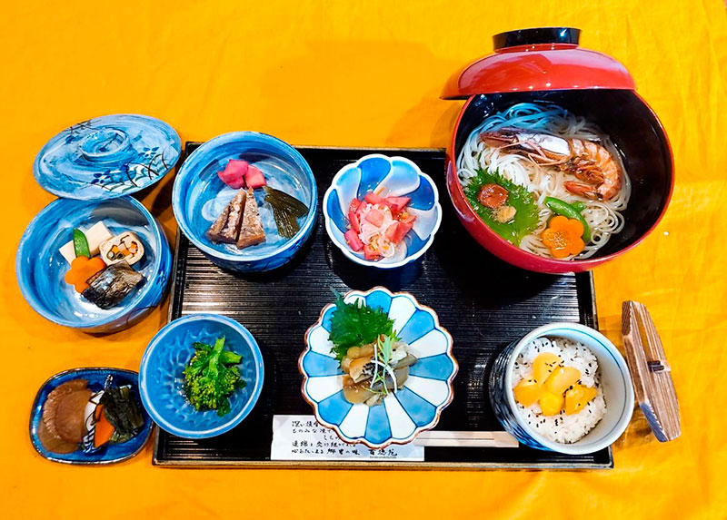 ほかに、秋田米がおいしい百穂苑定食、秋田名物きりたんぽ鍋、特製稲庭うどん、カドのすしなども好評です。