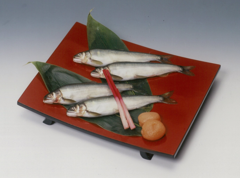 初物の鮎を漬け込み今では当苑のみに伝わる手法で作られ昔は殿様いがい食べることのできなかった【鮎の姿ずし】ご提供できる時期も数も限られた逸品でございますので是非お立ち寄りの際は幻の郷土の味をお楽しみ下さい。※ご提供方法は写真とは異なります。